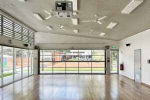 The hall features a canteen area, kitchenette, storage space, and accommodates Outside School Hours Care (OSHC) services.